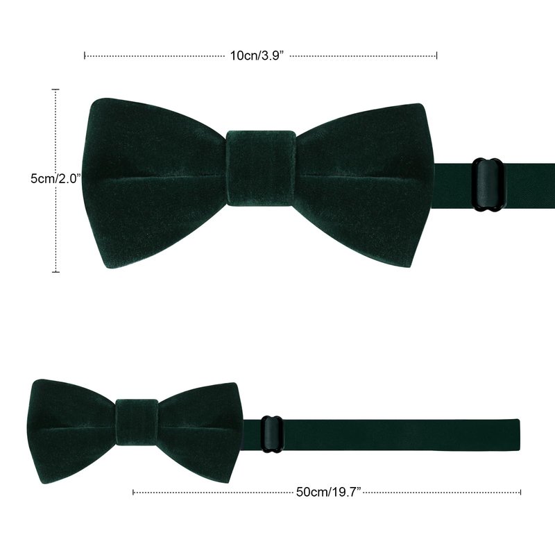 - Solid Bow Ties for Boy - Pre-tied velvet bow tie size: 4”x2” (10x5cm), it is easily adjustable to fit neck sizes between 12'' to 21''. When everyone wears silk and satin, but the rich texture and hand of velvet takes accessorizing to a whole other level, one that will make you truly stand out in a crowd.