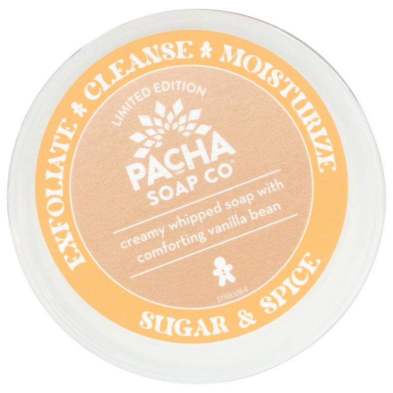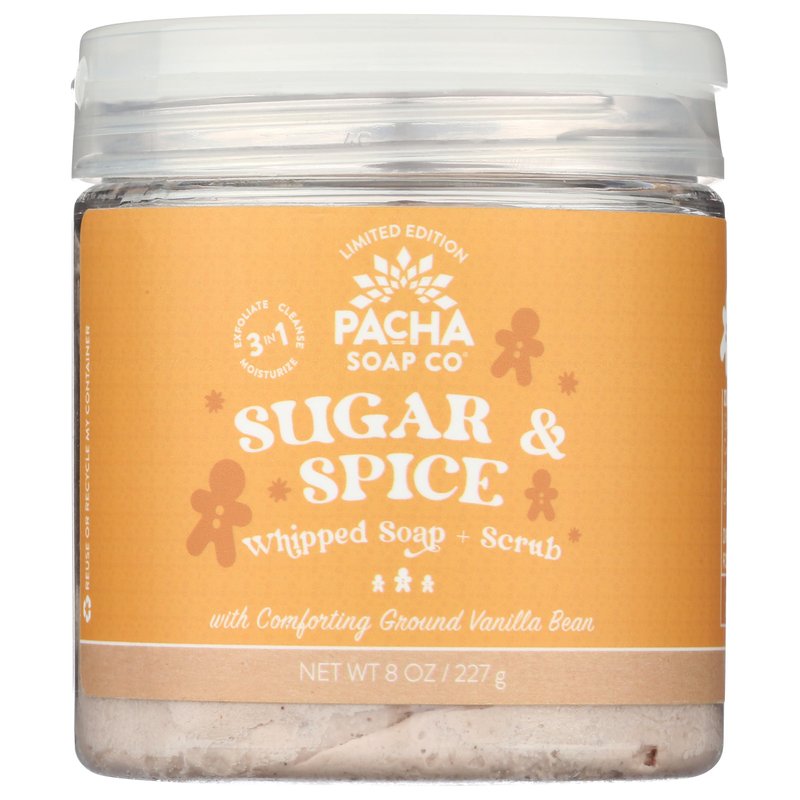 Pacha Sugar & Spice Whipped Soap & Scrub, Luxurious Body Wash and Scrub for a Nourishing & Relaxing Head to Toe Cleanse, 8 oz