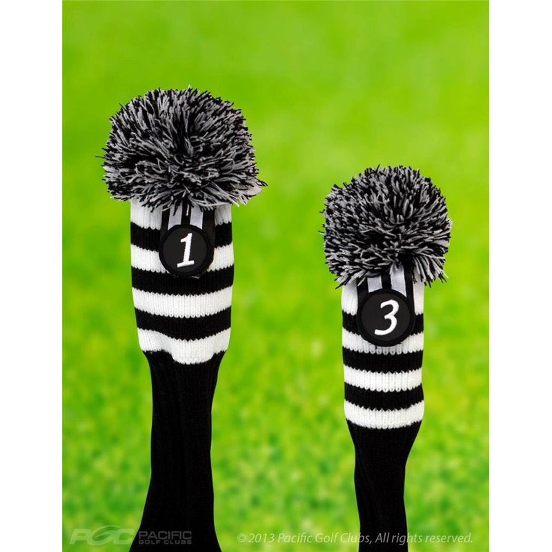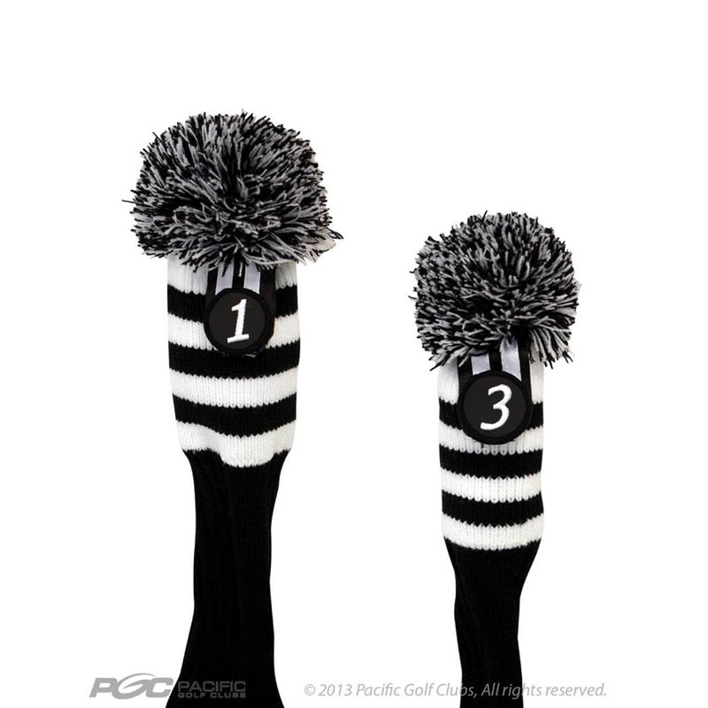 Pacific Golf Clubs Head Covers 1 3 Black and White Knit Retro Old School Vintage Stripe Pom Pom Throwback Classic