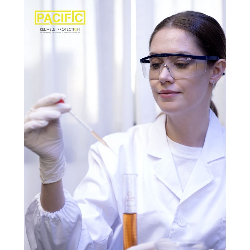 PACIFIC PPE 2 Pack Safety Glasses, Anti-fog, Scratch Resistant Clear Wraparound Lenses and No-Slip Grips, Adjustable, Lab Goggles