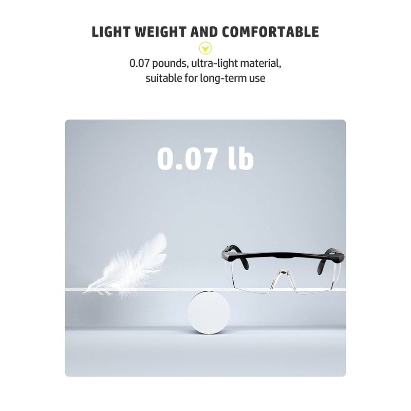 - 𝐎𝐧𝐞 𝐒𝐢𝐳𝐞 𝐅𝐢𝐭𝐬 𝐀𝐥𝐥 -The wrap-around frame of the safety protective goggles fit the nose and face snugly. Lightweight lenses add no burden on the nose bridge. The universal design fits all head sizes.