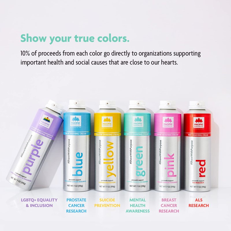 Who says shaving cream can't change the world? This rich and moisturizing shaving creams is unlike any other - IT IS ACTUALLY GREEN! Just the sight of it will brighten your day. BUT COLOR ISN'T THE ONLY DIFFERENCE. Year-round, 10% of the proceeds from each sale support the work of Mental Health America and their continued efforts to increase mental health awareness. Looking good and doing good couldn’t be easier, or more fun. #ShaveWithPurpose