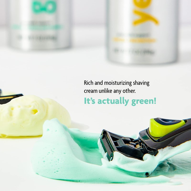- GOING GREEN IS EASY: The sight of this rich and moisturizing green shaving cream is bound to put a smile on your face.