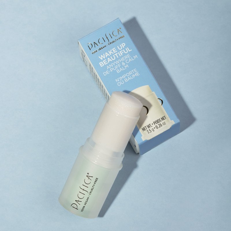 - WAKE UP BEAUTIFUL ANYWHERE DE-PUFF & CALM BALM this supercharged formula infused with illuminating powers, mushrooms, hyaluronic acid and quinoa, glides onto skin targeting puffiness and soothing dry skin and fine lines under eyes and anywhere else you need support day or night.