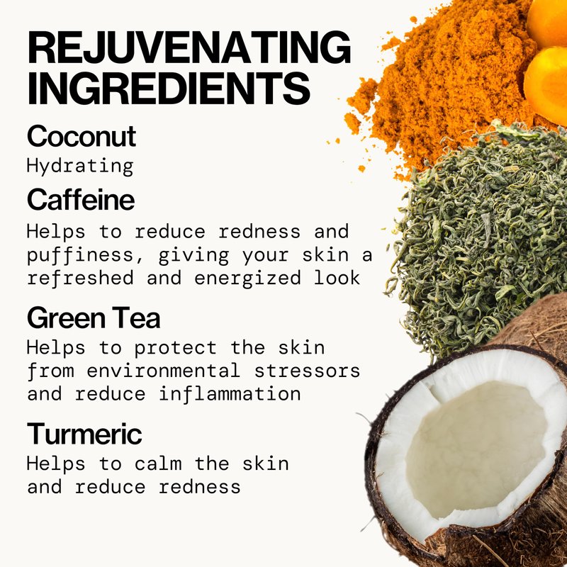 - SKIN LOVING INGREDIENTS like coconut, green tea, and turmeric