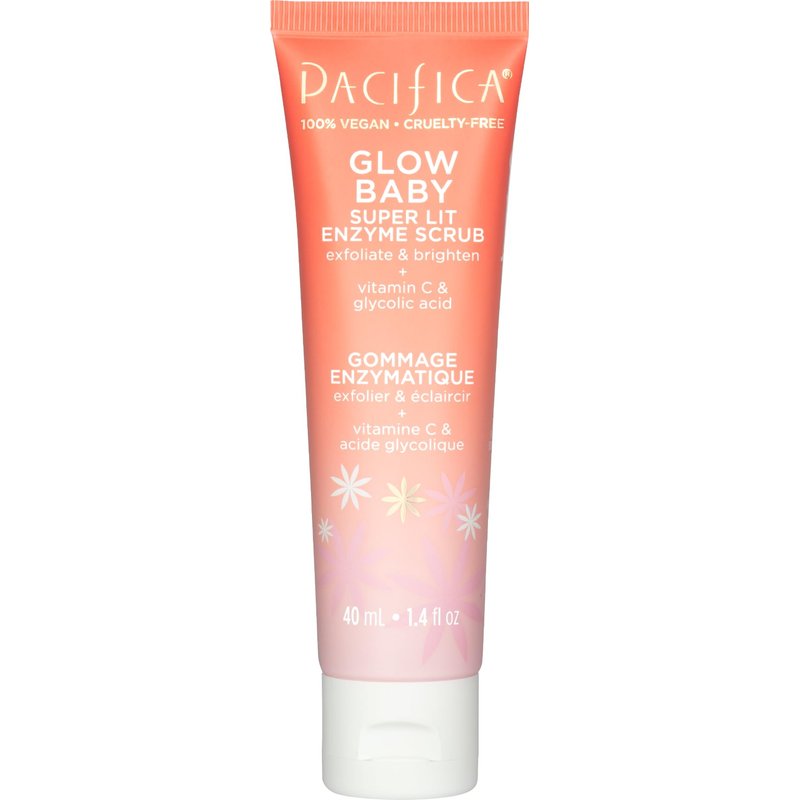 Pacifica Face Scrub - Glow Baby Super Lit Enzyme Scrub Mini, Skincare, Exfoliating Face Wash, Vitamin C, Glycolic Acid, Pore Cleaner, For Soft and Smooth Skin, Vegan, Travel Size, 1.4 fl oz (1 Count)