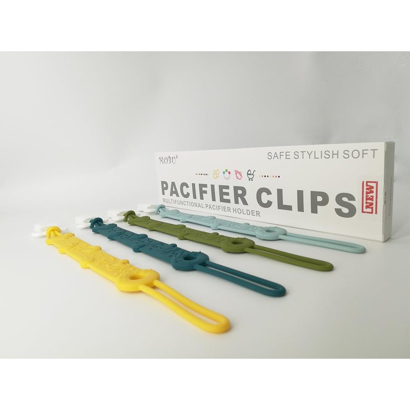 Pacifier Clip MOBU 4 Pack Silicone Pacifier Clips Holder for Baby Boy Girl Newborn Essentials One Piece Design Universal Pacifier Holder Birthday,Shower Gift (4 Colors_Ⅰ)