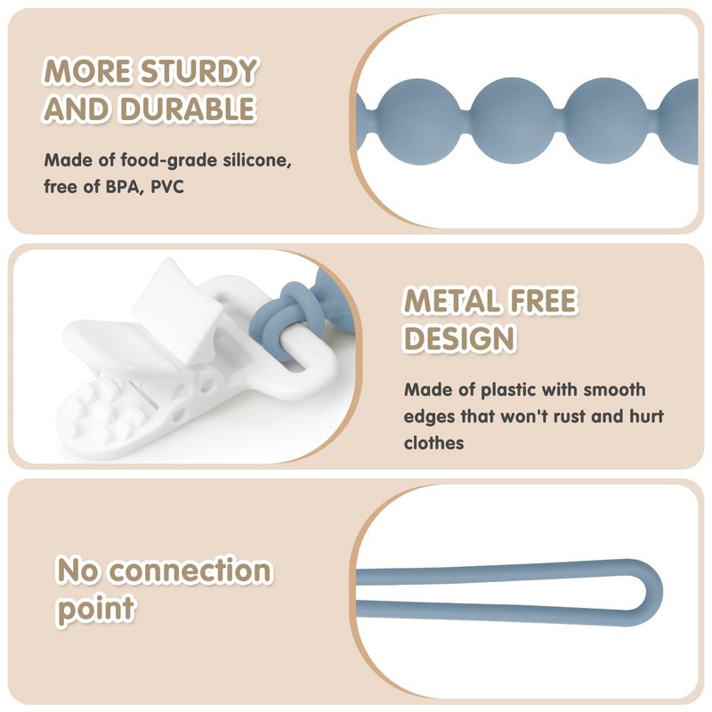 - One-Piece Design: This pacifier clip holder features a seamless one-piece silicone construction for durability and ease of cleaning.