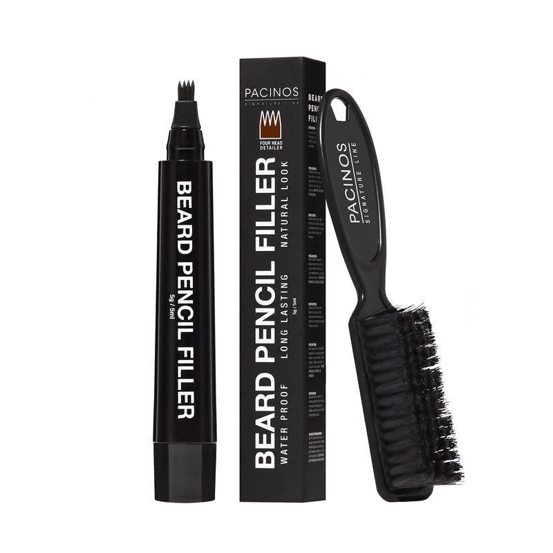 - EASY TO APPLY ✅ - Designed with a four fork tip head for a more seamless look. Start by drawing the contour of your beard or moustache and continue to color inside evenly along desired shape. As you apply the product, brush over the application with Pacinos Soft Bristle Brush to create a more natural look.