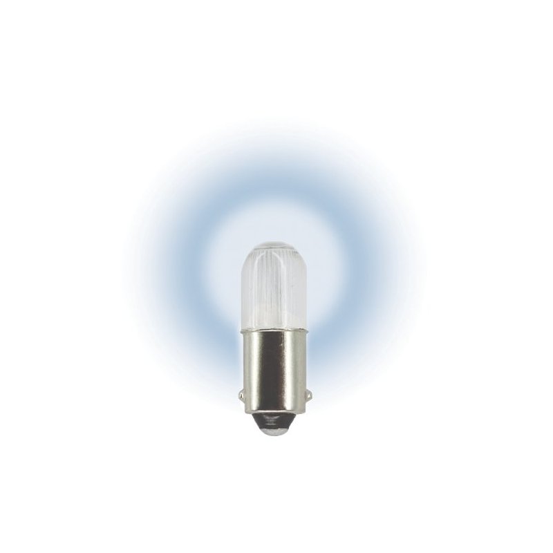 T3 1/4 Mini Bay LED, Color: White, Plastic Envelope Shape: T3 1/4, Max. Bulb Diameter (in): 13/32, Base Type: Miniature Bayonet (BA9s), Design Volts: 6.00, Mili Amp (mA): 0.01, Design Watts: 0.30, Bi-Polar: Yes, Viewing Angle Degree: 89, Luminous Flux: 3.40.