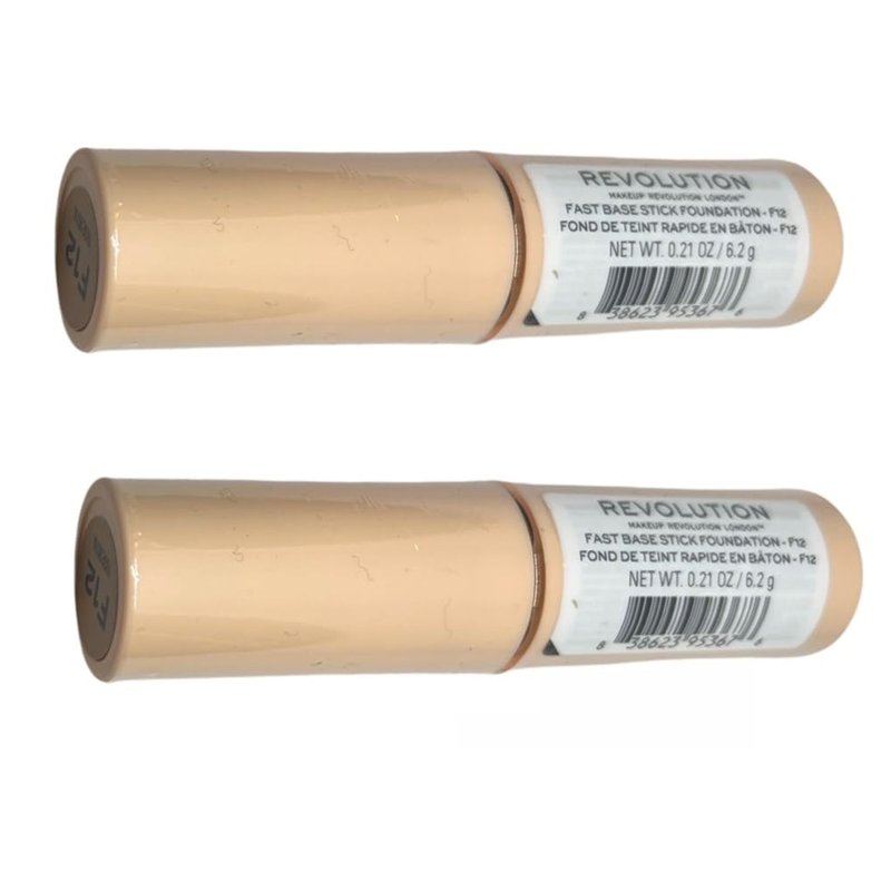 - Pack of 2 Makeup Revolution Beauty Fast Base Stick Foundation, F12 F12 – For medium/dark skin tones with a neutral undertone The easy-to-apply stick formula melts into skin, blending seamlessly to leave a fresh and dewy finish. Twist up, swipe on and blend out with fingers, a BEAUTY SPONGE or your favourite MAKEUP BRUSH. 0.21 oz / 6.2 g x2 Made in Taiwan