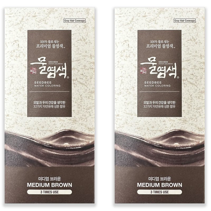 【 Pack of 2 】 Water Coloring Hair Dye Powder, Mix with only Water, 32 Herbal Ingredients for Healthy and Shinny Hair. (Medium Brown = Light Brown)