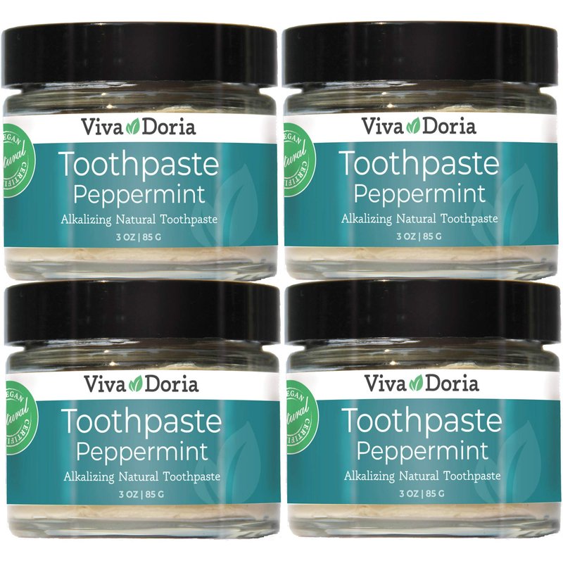 Pack of 4 Viva Doria Fluoride Free Natural Toothpaste - Peppermint (3 oz Glass jar) Refreshes Mouth, Freshens Breath, Keeps Teeth and Gum Healthy
