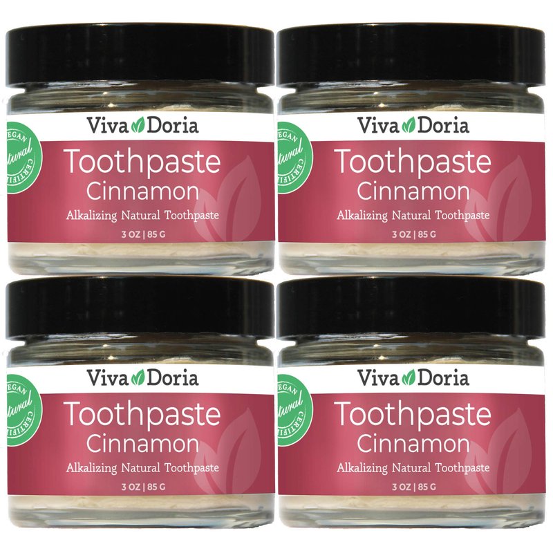 Pack of 4 Viva Doria Natural Toothpaste Fluoride Free Tooth Paste - Cinnamon, Refreshes Mouth, Freshens Breath, Keeps Teeth and Gum Healthy, Cinnamon Flavor, 3 oz Glass jar