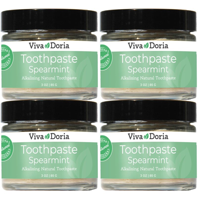 Pack of 4 Viva Doria Natural Toothpaste Fluoride Free Tooth Paste - Spearmint, Refreshes Mouth, Freshens Breath, Keeps Teeth and Gum Healthy, Spearmint Flavor, 3 oz Glass jar