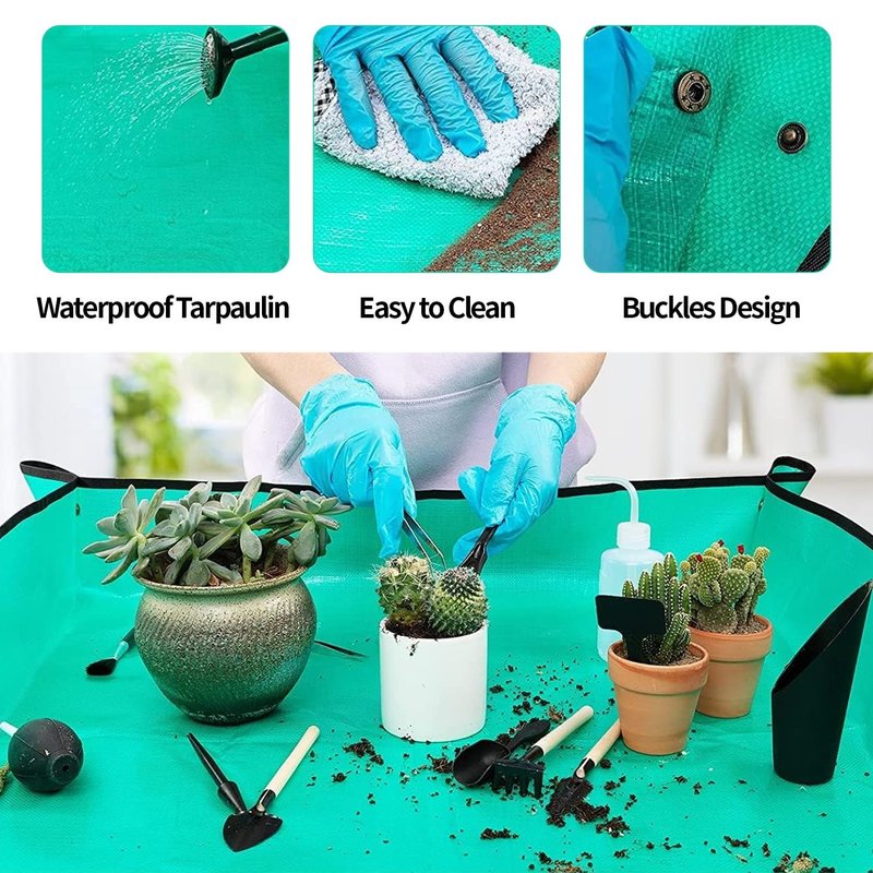 - 【Meet Various Gardening Needs】You can use the plant potting tarp mat for plant transplantation, and mix different kinds of soil inside the mat to meet the nutritional needs of plants. The succulent tool with mat can help you dig, water, loosen the soil, transplant, wash, trim, weed, etc., suitable for succulents, bonsai plants and small indoor plants, etc.
