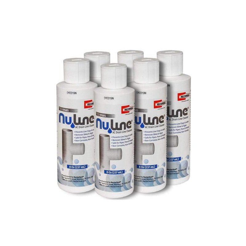 Item Specifications: Nu-Line provides cleaning action for soil and build up and water deposits in air conditioner and refrigeration drain lines , pans and condensate pumps. Also for ice machines , drinking fountains and soft drink machine drain pans and lines. SAME PROVEN FORMULA...Brand New Packaging!