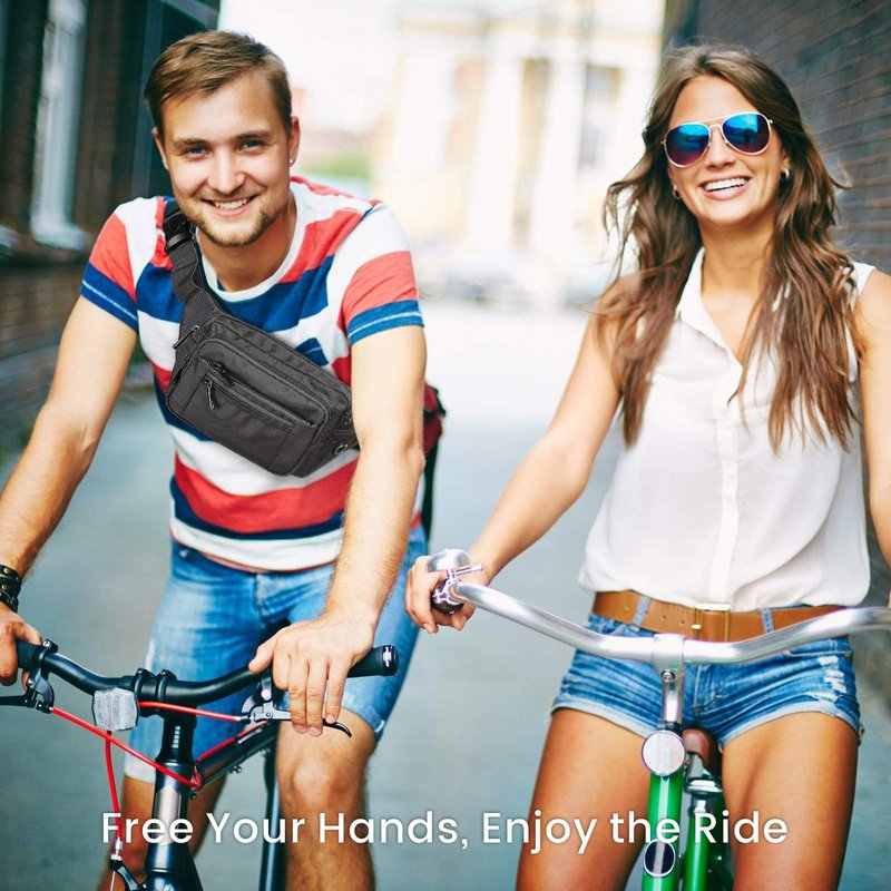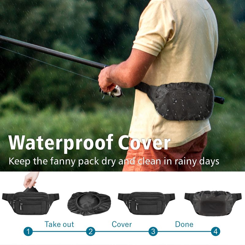 Packism aims to carefully conduct detailed research on user needs and patiently select materials to design this simple but fully functional bag - Fanny Pack for men and women with 6 pockets(for age 12 or above) Why choose this traveling fanny pack: 1. Perfect match for outdoor enthusiasts - cyclists, runner, jogger, trainer, camper, hiker, wayfarer, climber, and hunter. 2. Classic rich black styles never go out of style forever on various occasions - fairs, concerts, farmers markets, travel, running, jogging, climbing, bicycling, dog walking, and running grocery sales. 3. The hip bag can be across at the waist as a bum bag money bag, crossbody as a cross-body bag, or hung on the shoulder as a casual fanny bag. 4. Hands-free and more relaxed than carrying a bag when traveling or workoutsBlack Fanny Pack Unique Feature: 1. Six roomy pockets hold everything you need without being too bulky - Main Pockets: 4 (Outside)+1( Rear )+Minor:1(Inside). 2. Optimal layouts balance the weight of the waist bag without being sag in anyone's pocket. 3. The security buckle is stronger and wider than many other flimsy clips on the market. 4. The 100% polyester fabric material is lightweight, tear-resistant and durable. Product Specification: 1. Length: 8.7 inch 2. Height: 3.9 inch 3. Width: 5.1 inch 4. Strap: 26-51 inch 5. Material: polyester