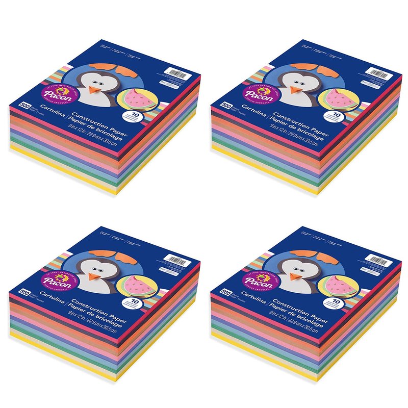 Pacon 9 x 12, 6555 Rainbow Super Value Construction Paper Ream, Assorted, 500 Sheets (4 Pack)