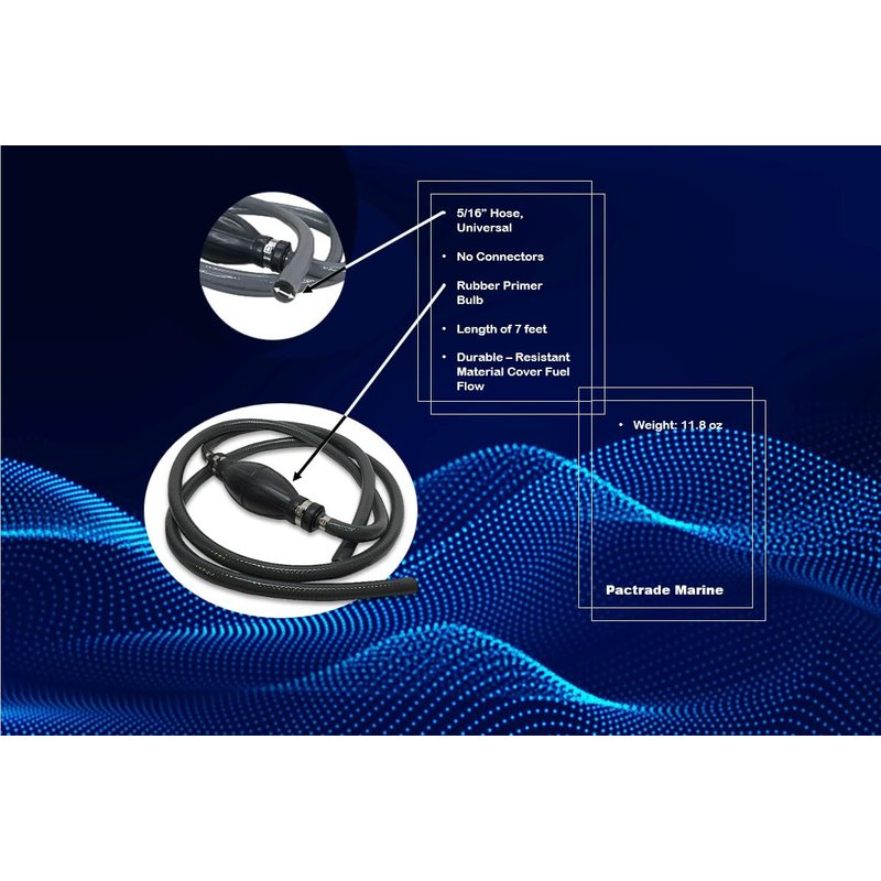 Pactrade Marine Grey Durable Fuel Line Assembly Hose Barbs Rubber Primer Bulb Lengthy 7 ft feet Resistant Material Cover Fuel Flow (5/16" Hose, Universal - No Connector)
