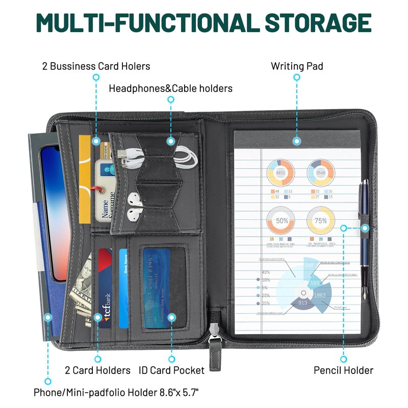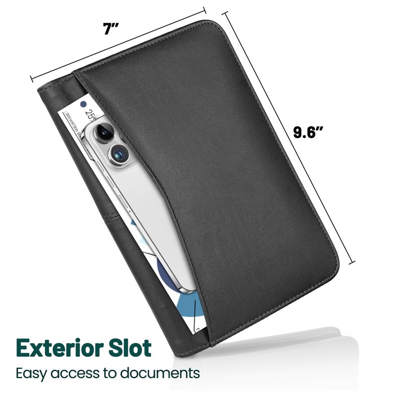 - NO MORE FUMBLING AROUND - Various inside pockets and slots capable of holding cards, documents, and a pen, which facilitate your daily use and business travels. Refillable 4.9x8 inch note pads included for extra convenience