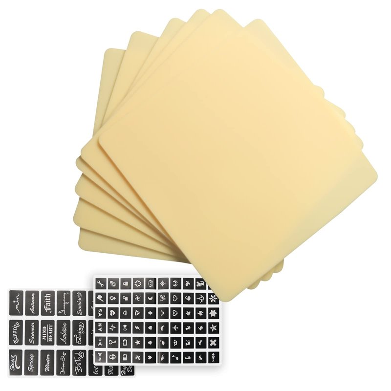 - 【Best Combination】This tattoo practice skin kit includes 6 Pcs 3mm tattoo practice skins as well as 2 Pcs tattoo templates. The size of each practice skin is 7.87x7.87in, and the size of each tattoo template is 11.4x8.3in. Both sides of each tattoo fake skin are blank, providing enough space for your masterpiece creation.