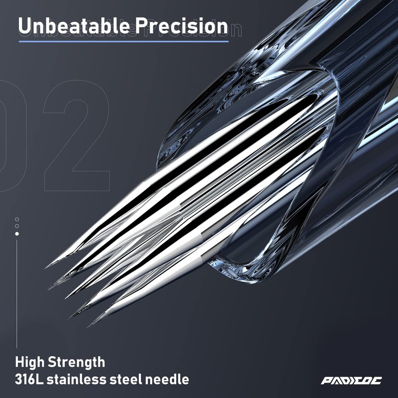 - ➷High Quality: The tattoo cartridge needles are made of high-grade 316L stainless steel and high-density clear plastic, leveling soldering, burr-free, and sharp needle tip. And the new design can make the tattoo needle cartridge catch more ink. Individual packaging is more hygienic.