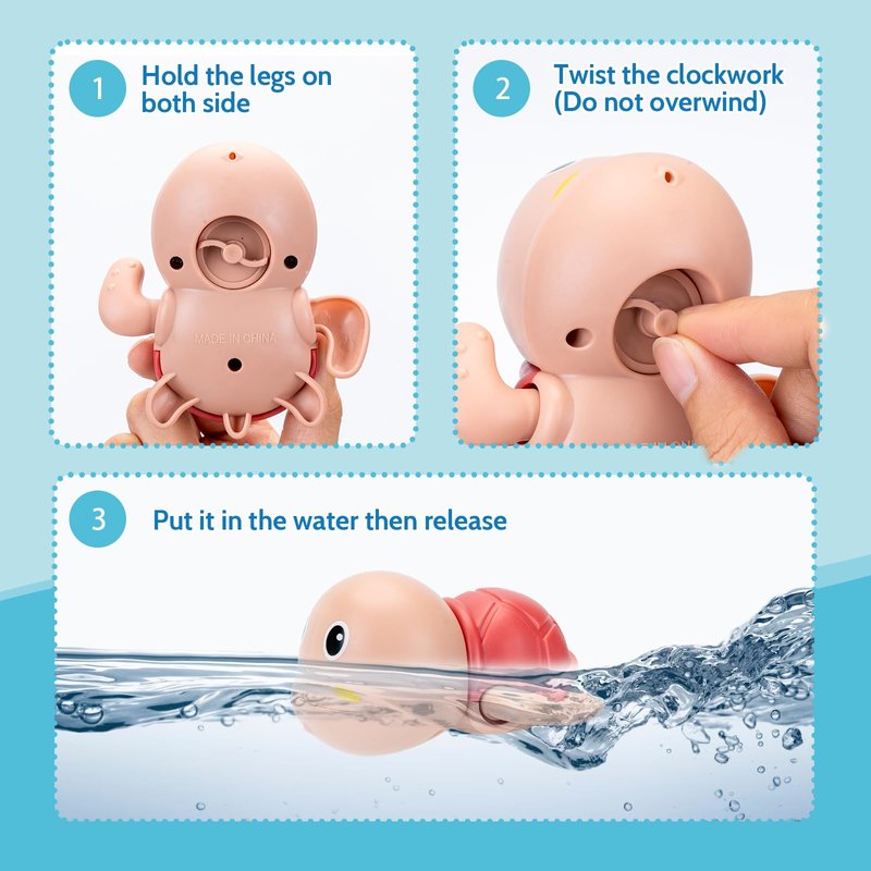 - 【Cute Turtle Bathtub Toy Set】The swimming tortoise Bath Toys set includes 3 cute turtle toys (blue, pink, green). Bath time can be a fun and enjoyable experience for your little ones with our funny water play sets. Baby will be attracted by these bright color bathtub toys swimming around in the tub, bring your baby a lively and interesting bath time. Our infant bath toys are baby-safe and parent-assured, perfect water toy bath toy for toddlers, kids, baby, boys, girls1 2 3 4 5 years old