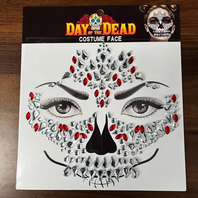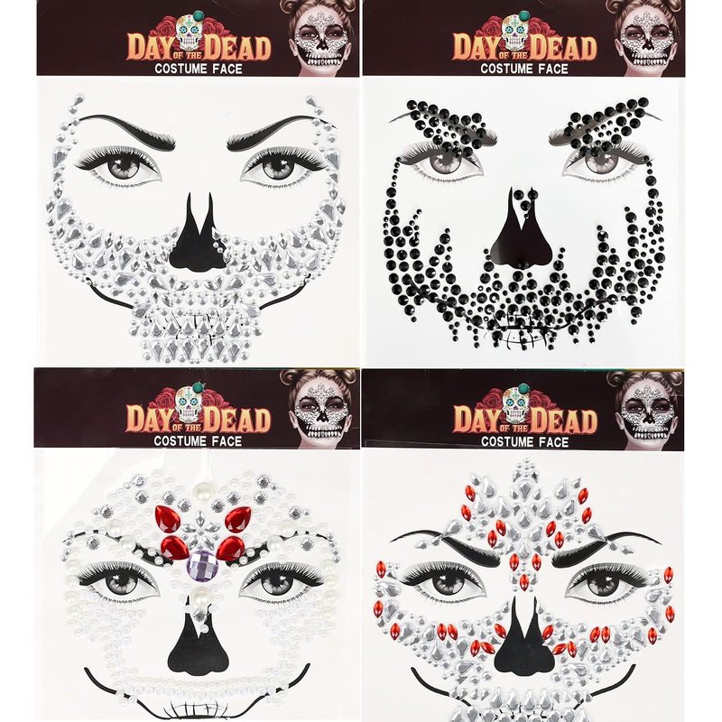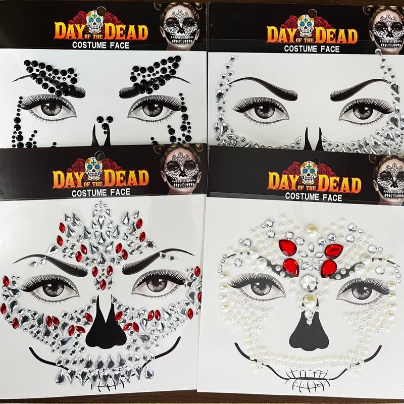 - Packages - 4 different styles unique day of the dead face gems tattoo stickers. Complete your festival outfit off with these amazing gems!