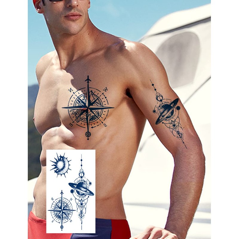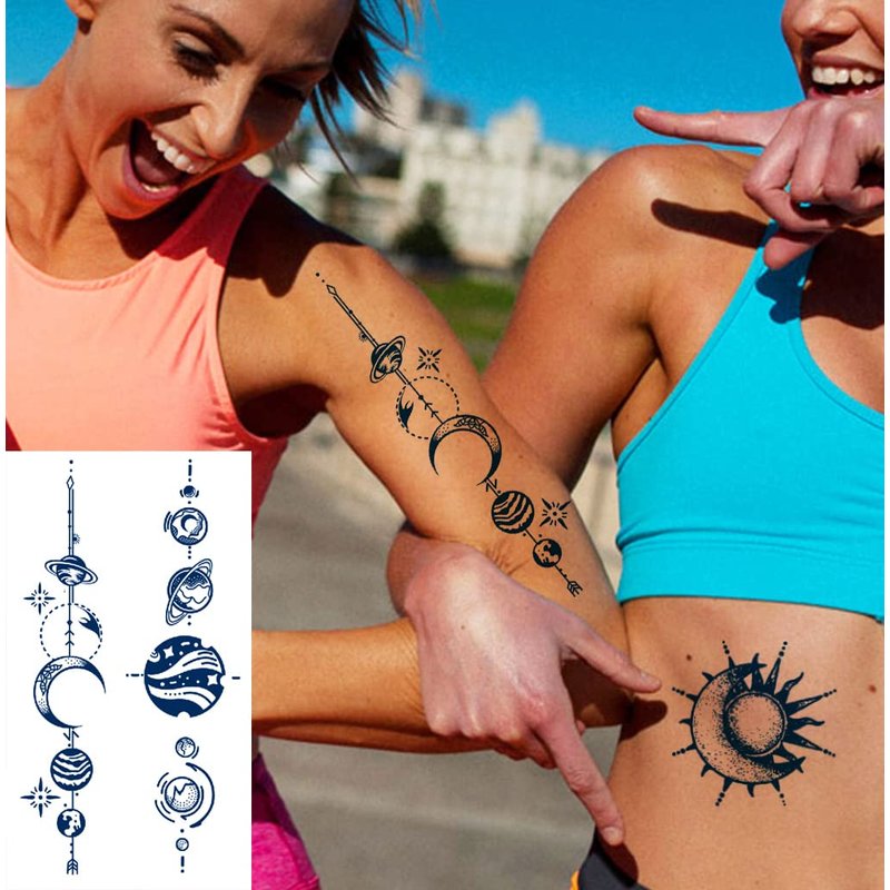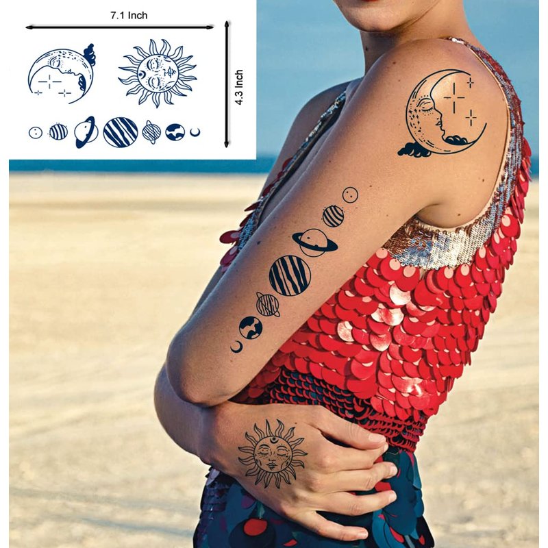 PADOUN Space Semi Permanent Tattoo, 6-Sheet Long Lasting 1-2 Weeks Temporary Tattoos Universe Sun Moon Stars Tattoo Stickers, Waterproof 100% Plant-Based Ink Infinity Realistic Fake Tattoos for