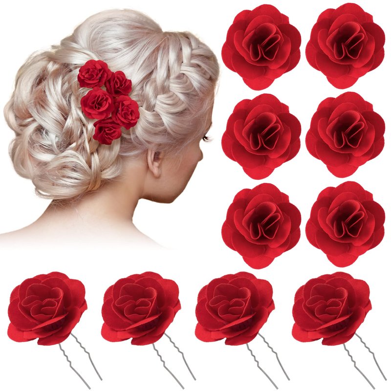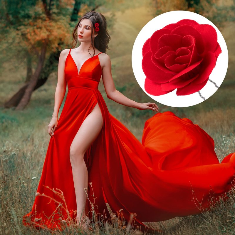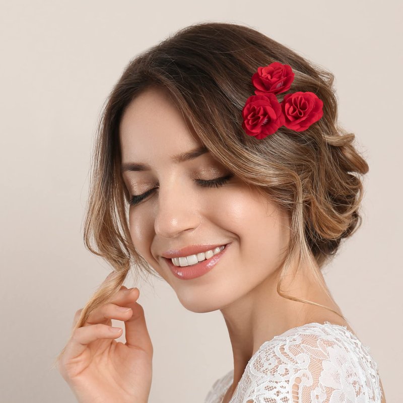 - Elegant Rose Flower Design: The beautiful lively rose flower hair clips for bridesmaids are very elegant, bobby pin decorated with lovely red rose flowers, which can add charm and active feeling to you and make you more beautiful.