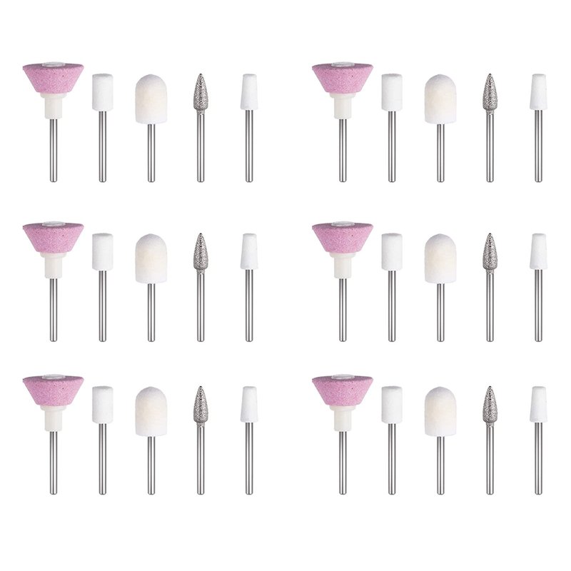 - ✅Package contain: 30 Pcs Repacement heads, 6 x Coarse Dise bit- Grind nails and exfoliate 6 x Felted Wool Bit- Polish and clean Nails surface bris 6 x tight ares such as sidewalls and cuticles 6 x Barrel Bit-Smooth and Polish Surface 6 x Cone Bit-Remove Cuticles