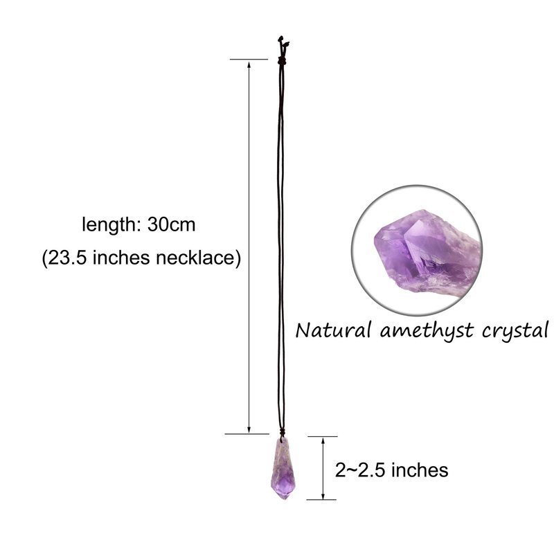 - Length of Amethyst: 5~6cm; Length of rope: 60cm (adjustable, can not open)