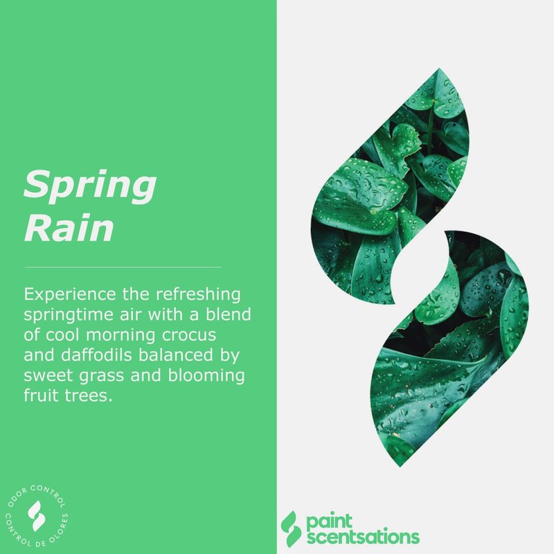 - ROOM FRESHENER PAINT ADDITIVE. This formula contains the Spring Rain scent. Experience the refreshing springtime air with a blend of cool morning crocus and daffodils balanced by sweet grass and blooming fruit trees. Freshen any room with this fragrance.