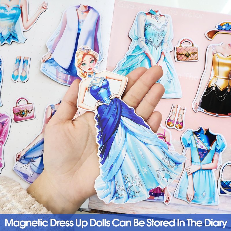 - 👧👗 Our magnetic dress up doll is made of paper material and is magnetic, ensuring long-lasting play and use and durability. These paper dolls are themed with matching princess outfits, and with magnetic clothing and accessories, they can be combined and matched with different outfit styles to create a unique fashion look.