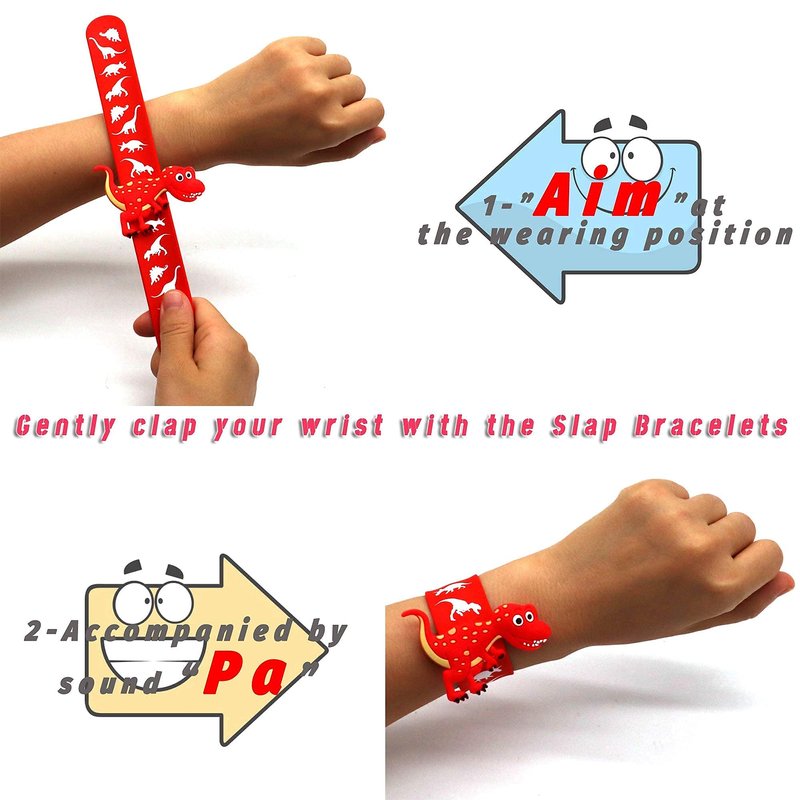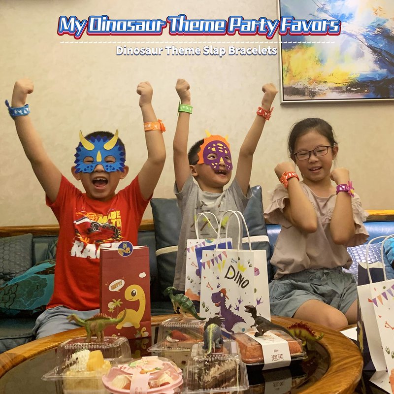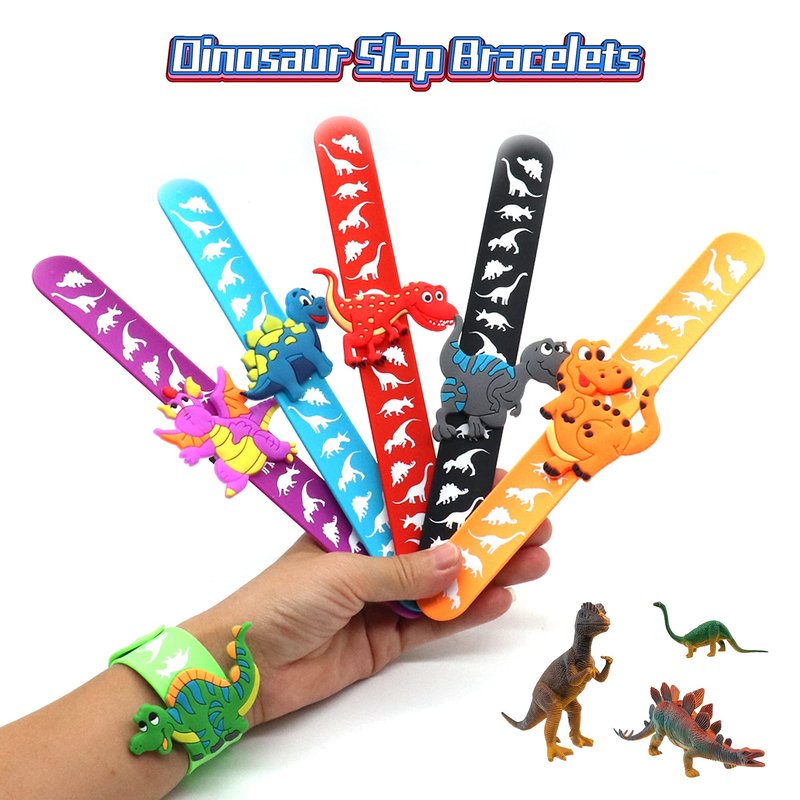 - 5/Party Favors:Use dinosaur theme slap bracelets as Valentines Day classroom exchange party favors, birthday party favors, good behavior rewards at home or school, game prizes, stocking stuffers, goodie bags, Easter favors, Halloween gifts, christmas gifts and more!If you find any problems during the purchase process, please contact us in time and we will solve them as soon as possible. If you need other party supplies, please enter our store to get more fun!