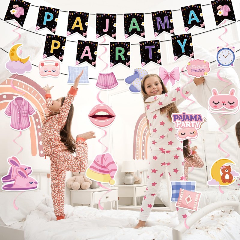 - Packing Include: This package includes 2 Pajama Party Banner and 8 Slumber Party hanging swirls, offering a perfect combination to decorate your night out parties, contains sleepover elements of sleepwear pillow bow lips, etc. Making your sleeping party more joyful