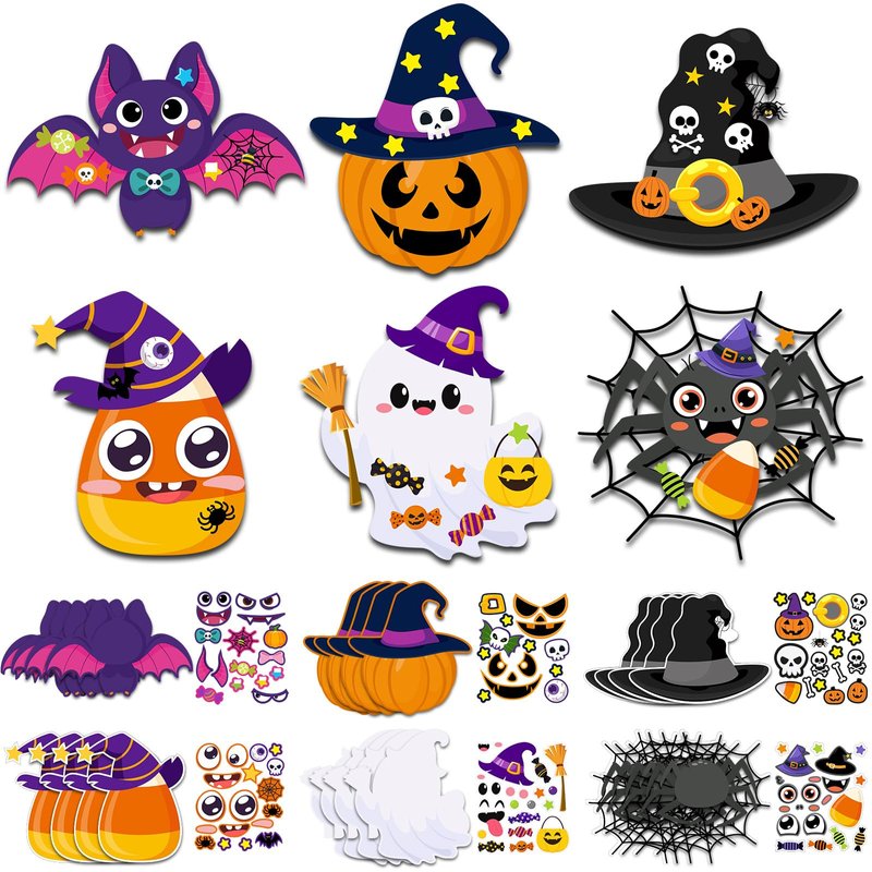 Pajean 24 Pack Halloween Craft Kits Make Your Own Halloween Craft DIY Halloween Craft Stickers Ornament DIY Arts and Crafts for Kids Classroom Activities