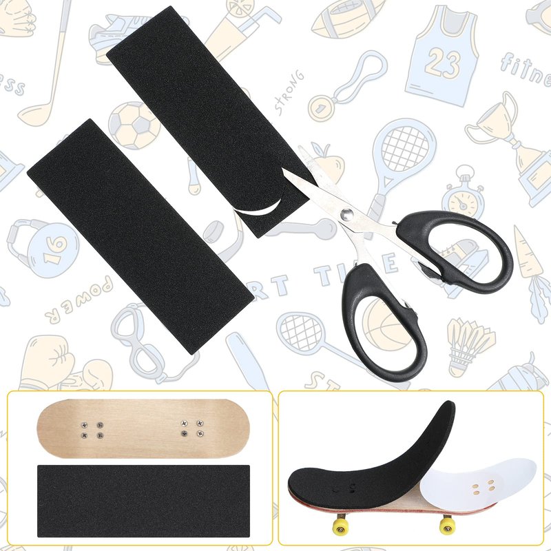 Features:Thoughtful presents:The finger skateboard grip tape foam will be a practical gift for people who love fingerboards, like family members, colleagues, relatives, neighbors and other important people.Move ways to use:The fingerboard foam griptape is designed for users who want to perform more skillful actions, helping increase the friction between the finger and the fingerboard, and it can bring a lot of fun and convenience in training and competition, which will be a practical accessory for hand extreme sports.Specifications:Quantity: 24Color: blackSize: 38 x 110 x 2 mm/ 1.5 x 4.33 x 0.08 inchesPackage includes:24 x Fingerboard grip tapesNotes:Manual measurement, please allow slight errors on size.The color may exist slight difference due to different screen displays.Not suitable for people younger than 14.