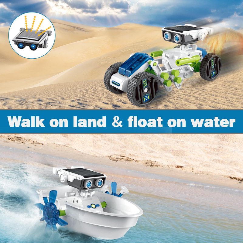 - Solar Powered: This solar robot kit includes a solar panel. With the gearbox assembled and connected to the solar panel, it can crawl, roll on land, or float on water in direct sunlight without battery power. Whether at home or outdoors, parents and children can experiment together, and the STEM project will help them understand the principles of solar energy and introduce children to scientific concepts and renewable energy