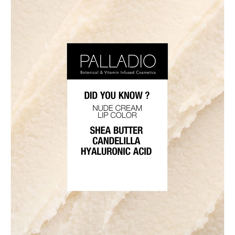 The Palladio Beauty Cream Lip Color is a long wear liquid lipstick that provides transfer proof, high intensity pigment. The lightweight formula glides on smooth, transforming from a cream into a matte finish that won’t bleed or crack. Infused with shea butter, this creamy lipstick provides your lips with comfort and hydration all day long. Available in 8 nude shades.