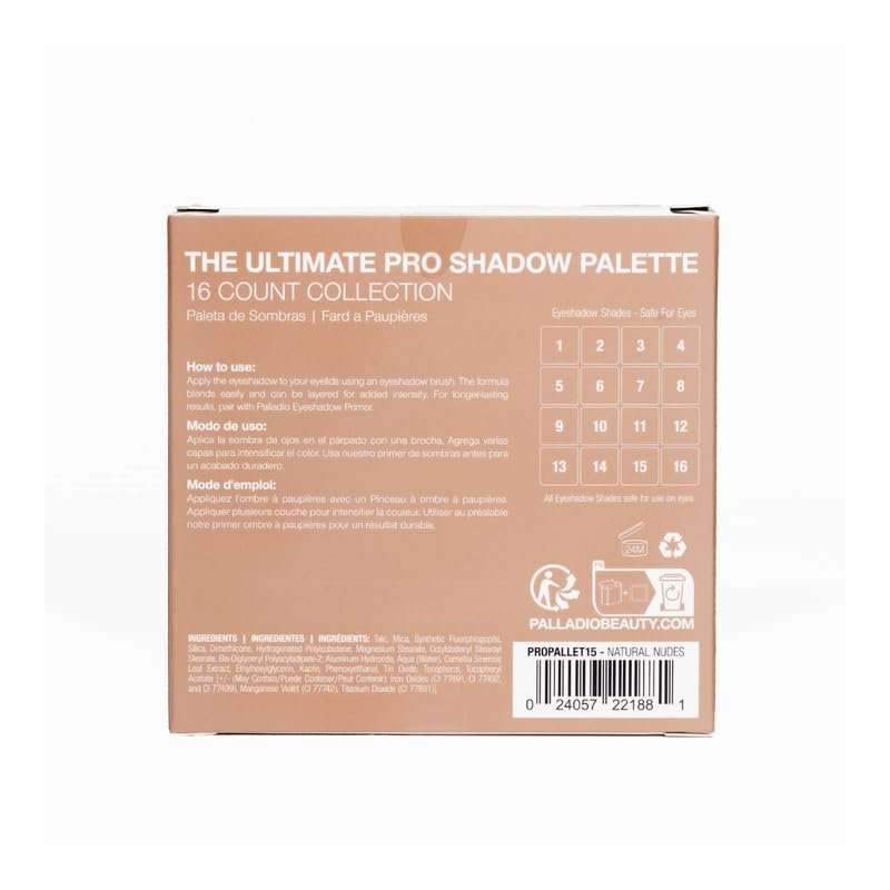 - ULTIMATE NATURAL NUDES PALETTE FOR SOFT GLAM LOOKS: The Palladio Ultimate Pro Shadow Palette in Natural Nudes offers 16 stunning shades, featuring a perfect mix of velvety mattes and shimmering tones. Effortlessly transition from subtle, everyday elegance to a polished, glam look with versatile neutral shades.