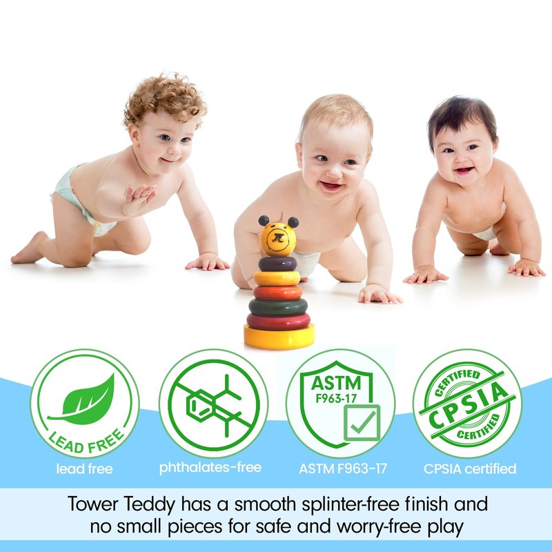 - SAFE MATERIAL – Tower Teddy has a smooth splinter-free finish and no small pieces for safe and worry-free play. Product is lead-free and phthalates-free, and conforms to ASTM F963-17 Toy Standard and CPSIA.