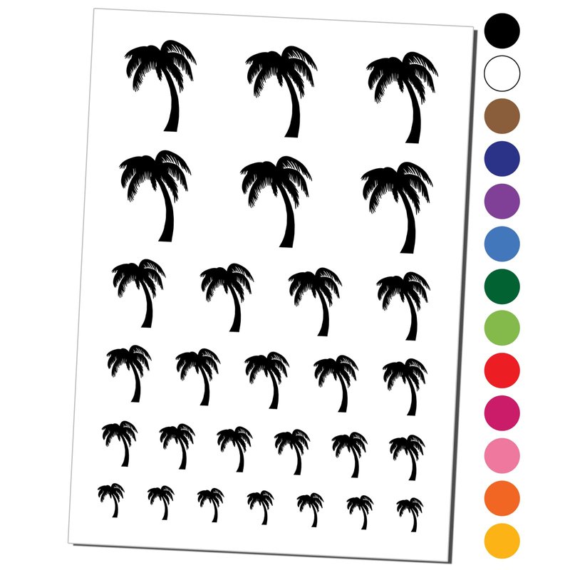 Palm Tree Tropical Solid Temporary Tattoo Water Resistant Fake Body Art Set Collection - Light Green (One Sheet)