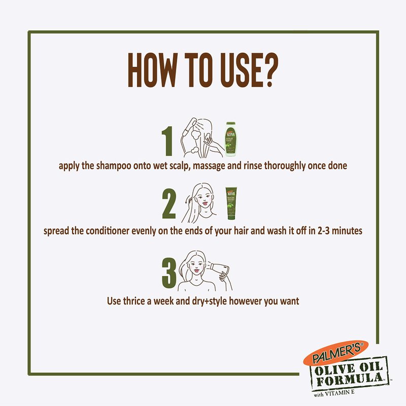 - Color: The Palmers olive oil formula smoothing shampoo enriched with extra virgin olive oil, hair keratin amino acids, and vitamin e which provide hair strength, and an excellent shine, also cleans the hair thoroughly by removing the product build up.