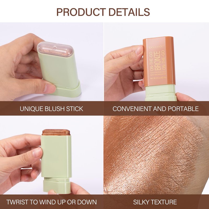 - Blendable Shimmer Highlight Stick --- Easy to blend, this highlighter stick seamlessly mimics shadows, creating a natural and sculpted appearance.The bronzer stick glides on smoothly and blends nicely.Its blendability allow for a flawless