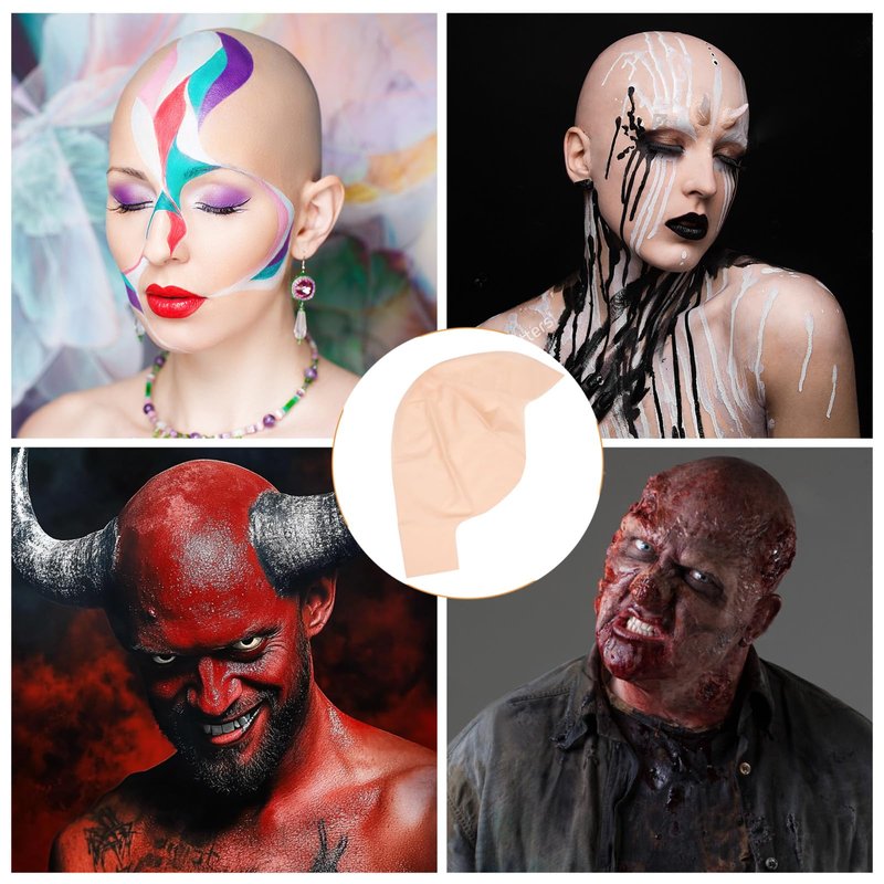 - WIDE OCCASION:Perfect for Halloween, cosplay, and themed parties, this bald cap for men&women helps you transform into any character effortlessly. Whether you're dressing up as a spooky creature or a sci-fi hero, this cap provides a realistic bald look, enhancing your costume for any event