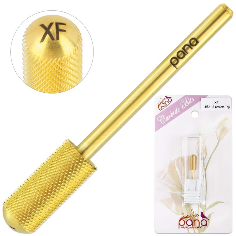 - PANA’s 3/32” Shank size Smooth Top Small Carbide bit has an Extra Fine grit that is made of a gold steel tungsten material and designed with a diamond shaped pattern to use for a finer precision in process of removing both manicure and pedicure reassuring you with a fast and smooth performance.