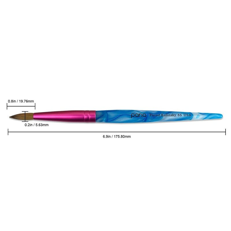 PANA Pure Kolinsky Hair Acrylic Nail Brush - Round Shape Pink Ferrule with White Swirl Blue Handle (Size 6) - Nail Brush for Acrylic Nail Application, Nail Extension, Manicure Pedicure Salon Beginner