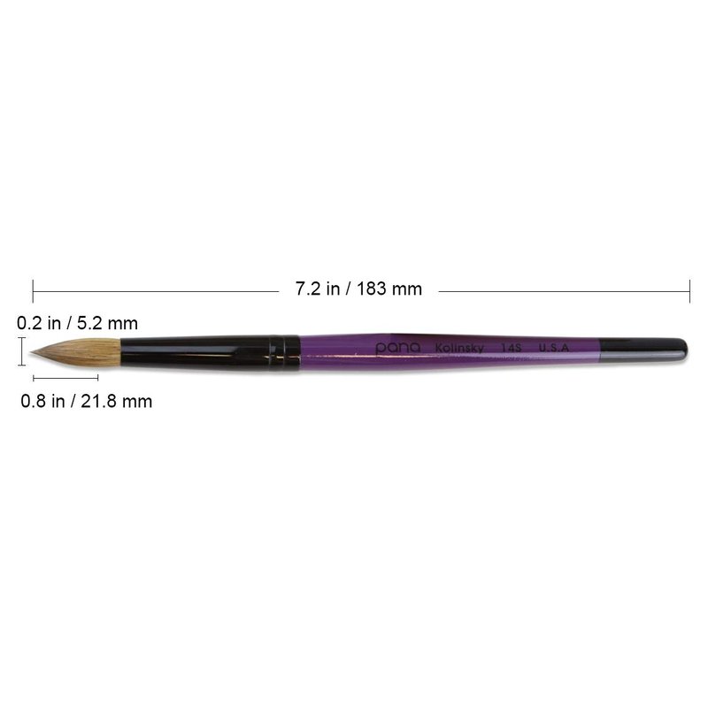 - Size 14 Round brush handle is a smooth and sturdy purple wood that comes with a sturdy black alloy crimped ferrule that holds the pure Kolinsky hair firmly to prevent splitting or deformation of the hairs. Weighted just right, the brush is made to provide full comfortability for all nail techs to hold.